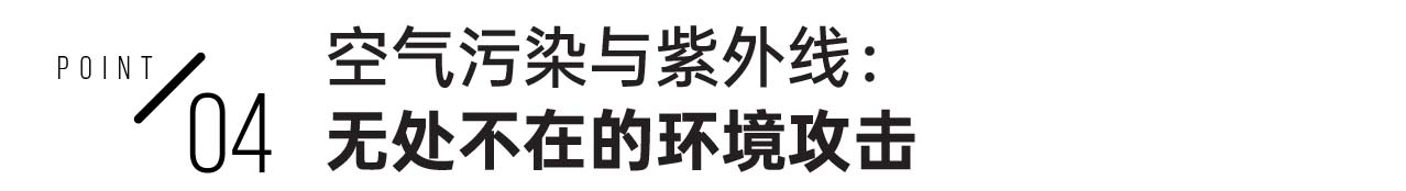 科学依据:PM2.5颗粒物表面吸附的多环芳烃(PAHs)等物质,吸入人体后经代谢可产生活性中间体,与DNA形成加合物,诱发突变。而紫外线(特别是UVB)则能直接被皮肤细胞中的DNA吸收,导致相邻的碱基发生交联,形成“嘧啶二聚体”,这是皮肤晒伤、光老化和皮肤癌的主要元凶。