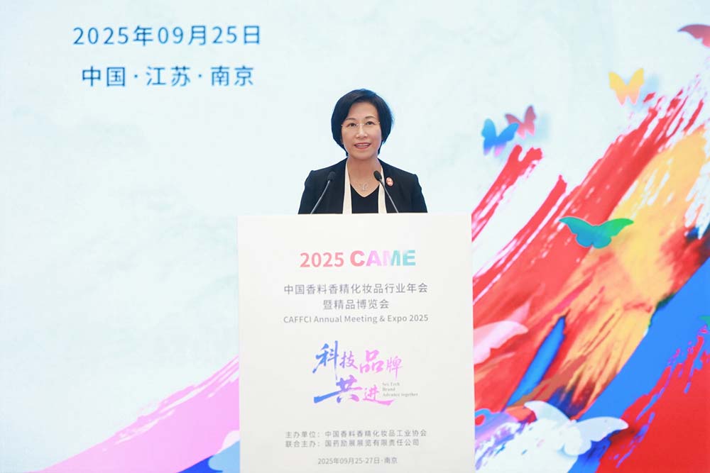 中国香料香精化妆品工业协会理事长、医学博士颜江瑛在2025CAME上致辞