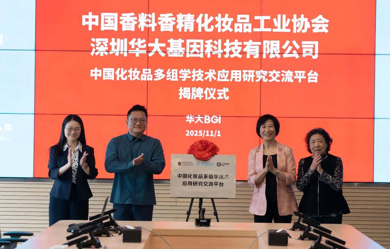 11月1日,中国香料香精化妆品工业协会理事长、医学博士颜江瑛一行到访华大时空中心,双方围绕化妆品领域科技合作展开深入座谈,共同为“中国化妆品多组学技术应用研究交流平台”揭牌,并签署战略合作框架协议。