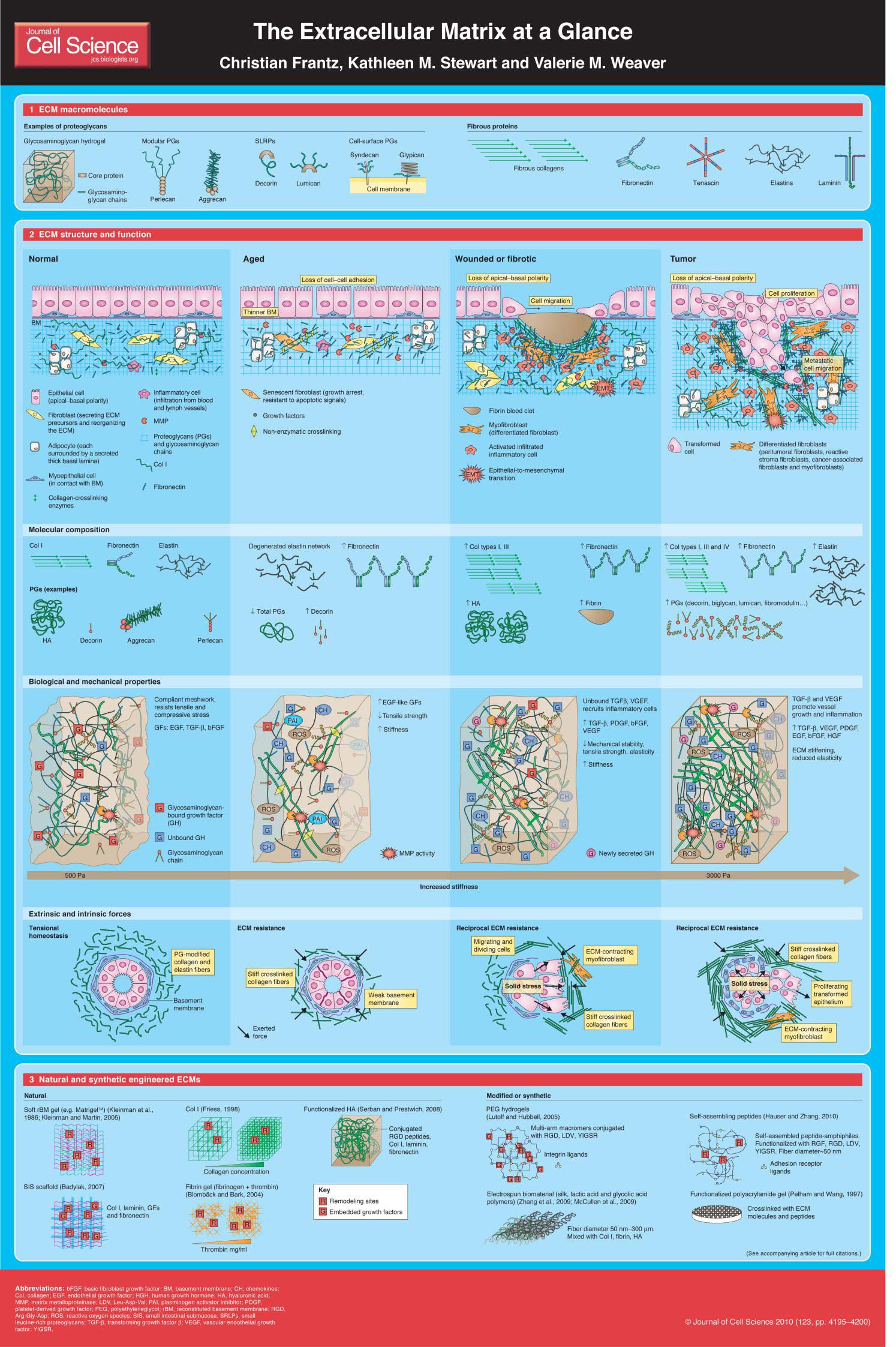 一张示意图说明ECM在正常、衰老、创伤、癌症中的对比与变化